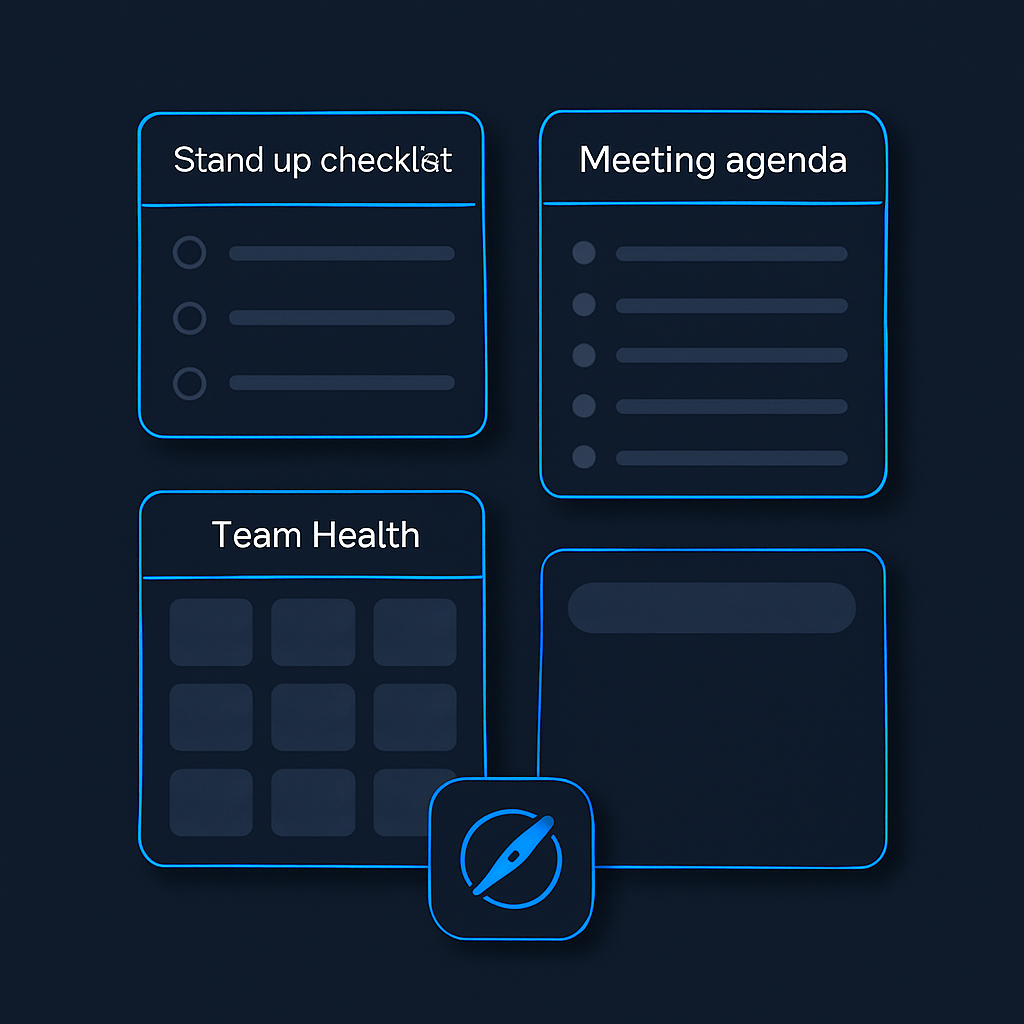 Everything you need to run effective daily standups. Includes agenda templates, blocker tracking, and team health metrics.